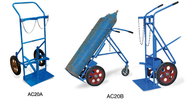 ● 支撐轉向輪易于運輸 ● 裝載氣瓶的支架由安全鏈條保證 ● 適用于雙氣瓶 ● 堅固的帶滾柱軸承橡膠輪