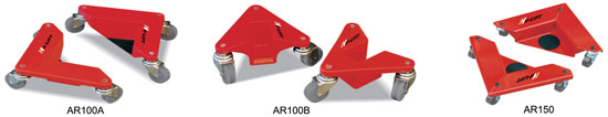 ● 此車基本用于搬運(yùn)矩形貨物 ● 機(jī)動性強(qiáng),用于無法使用大型搬運(yùn)設(shè)備的場所 ● 用千斤頂翹起貨物一角.將此搬運(yùn)器放在下面.如此重復(fù)每一角 ● 載物表面帶橡膠墊用于保護(hù)貨物 ● AR100A和AR100B是鋁制的 ●AR150是鋼制的 ● 搬運(yùn)車的3個腳輪都為萬向角輪,轉(zhuǎn)向靈活 ● 成套(4個)銷售