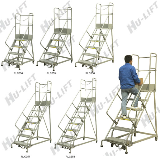 ● 配置踏板鎖定機構(gòu).踩壓底部踏板可自動固定梯子;踩壓底部踏板下方的解除鎖定壓桿,便可輕松移動取貨梯