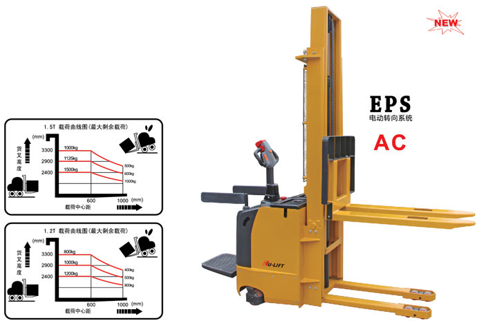 ● 帶電子轉式全電動堆高車 ● 美國CURTIS交流控制器,質量可靠,性能優異,使整車性能達到最佳狀態。 ● 交流驅動電機,免維護,提供強大動力,具有更強的滿載爬坡能力。 ● 性化的護臂結構,開閉操作方便 ● 配置大容量的牽引電池,充電方便快捷,電量持久,帶電量顯示表,低電壓報警燈 ● 特殊軋制工藝制造的“C”型鋼門架.確保更長久和更安全的使用 ● 帶有低電壓保護功能.在蓄電池電壓短時間低于規定電壓時.低電壓保護功能可保證電池及電器元件的安全。 ● 采用立式驅動,使電機、剎車等的檢測、維修直接方便 ● 符合歐洲EN1757-1:2001,EN1727標準