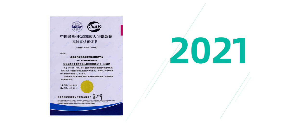浙江潮邦廚具電器有限公司檢測中心獲CNAS實驗室認可