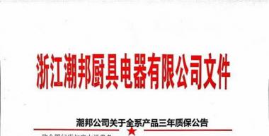 近日,浙江潮邦廚具電器有限公司推出一項(xiàng)全新服務(wù)政策,即自2021年5月6日起,用戶在線上、線下渠道購(gòu)買的潮邦集成灶將享受整機(jī)質(zhì)保三年,保