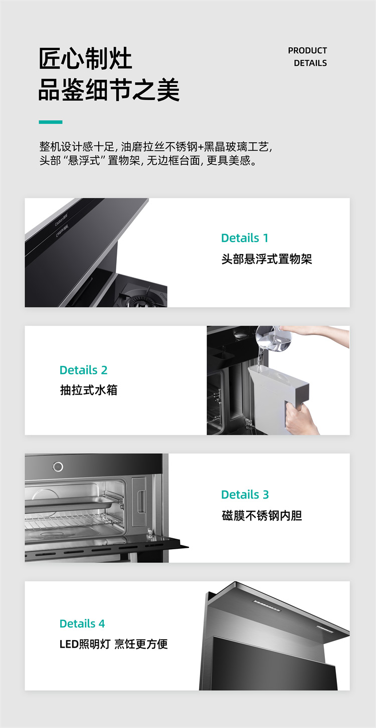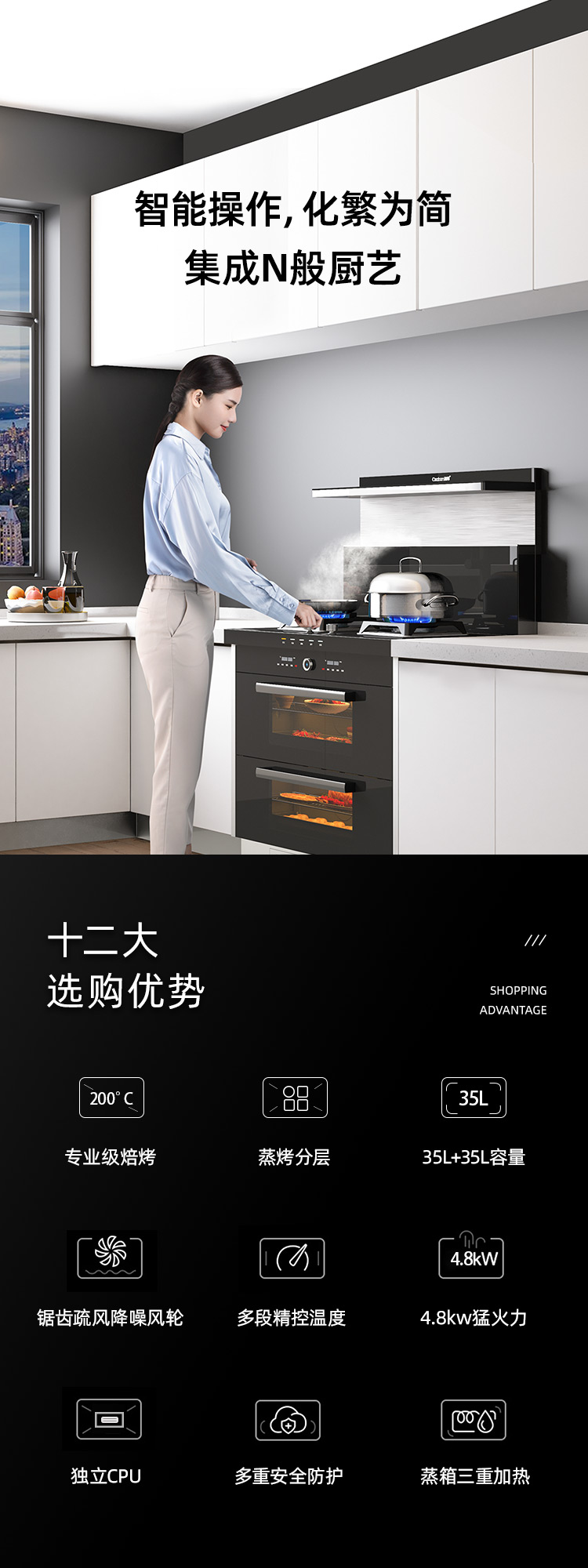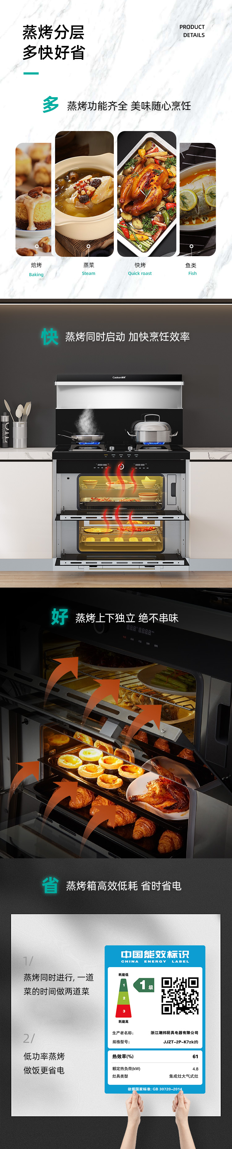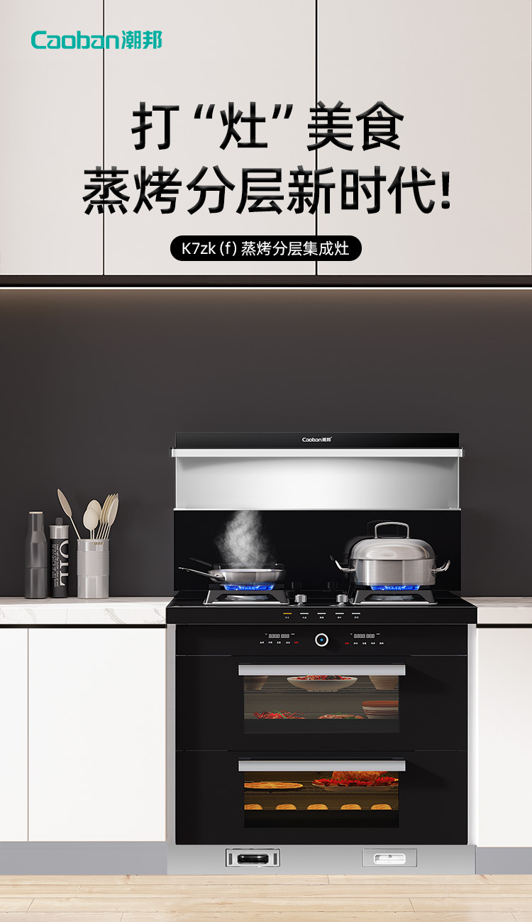蒸烤分層集成灶,邊蒸邊烤,美味加倍,引領蒸烤分層新時代。