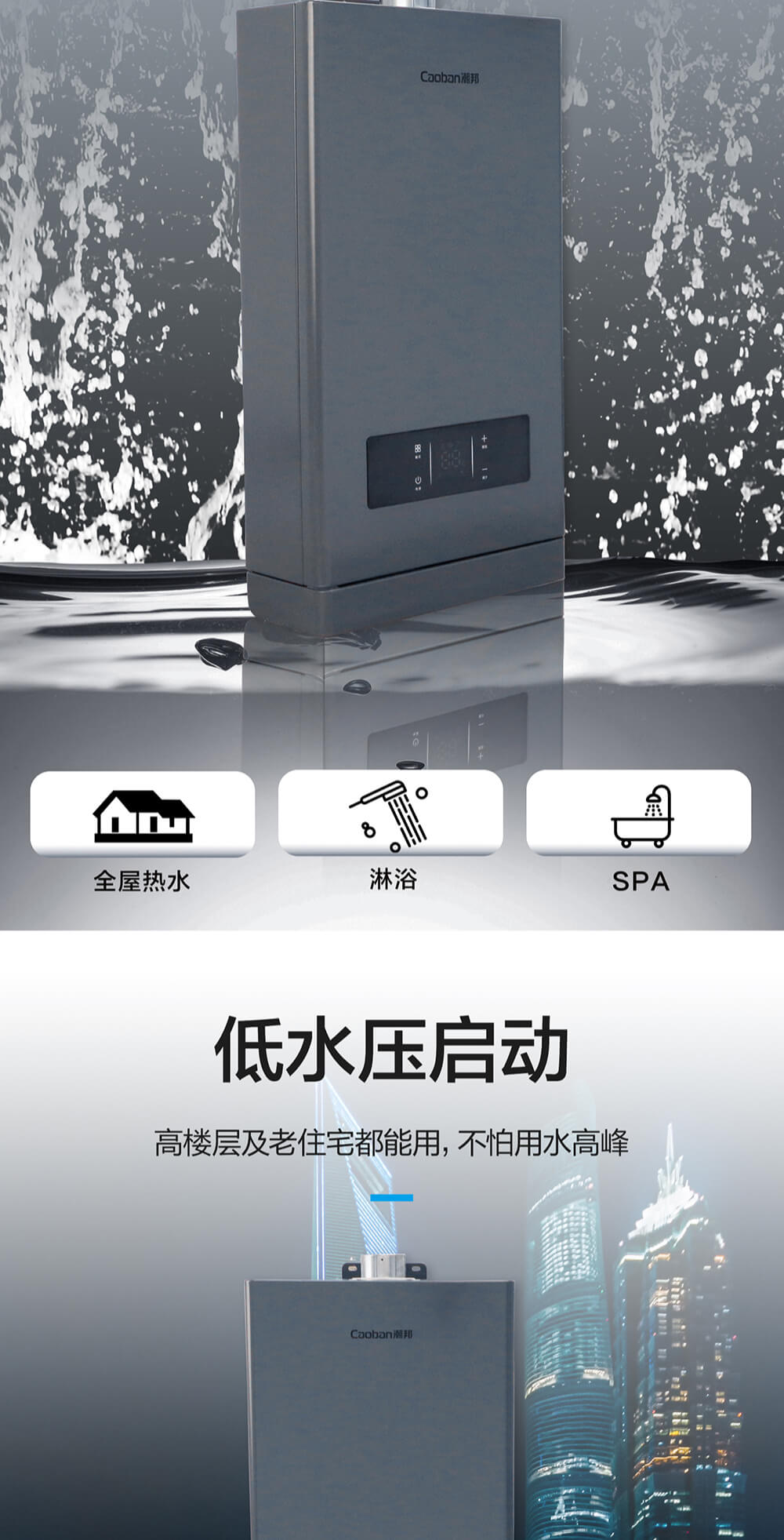 智能恒溫,無氧抑菌水箱,分段燃燒,低氣壓?jiǎn)?dòng),節(jié)能高效。